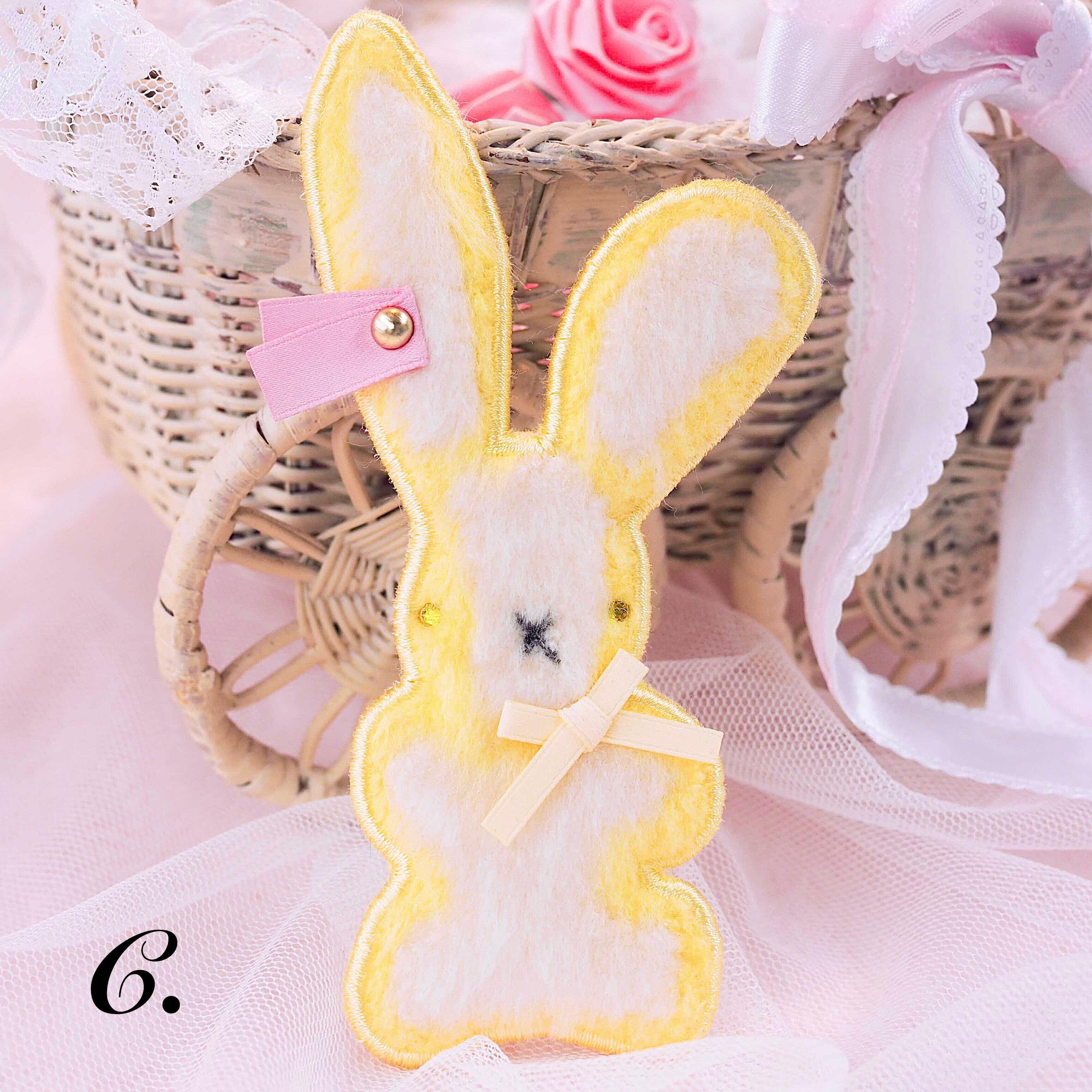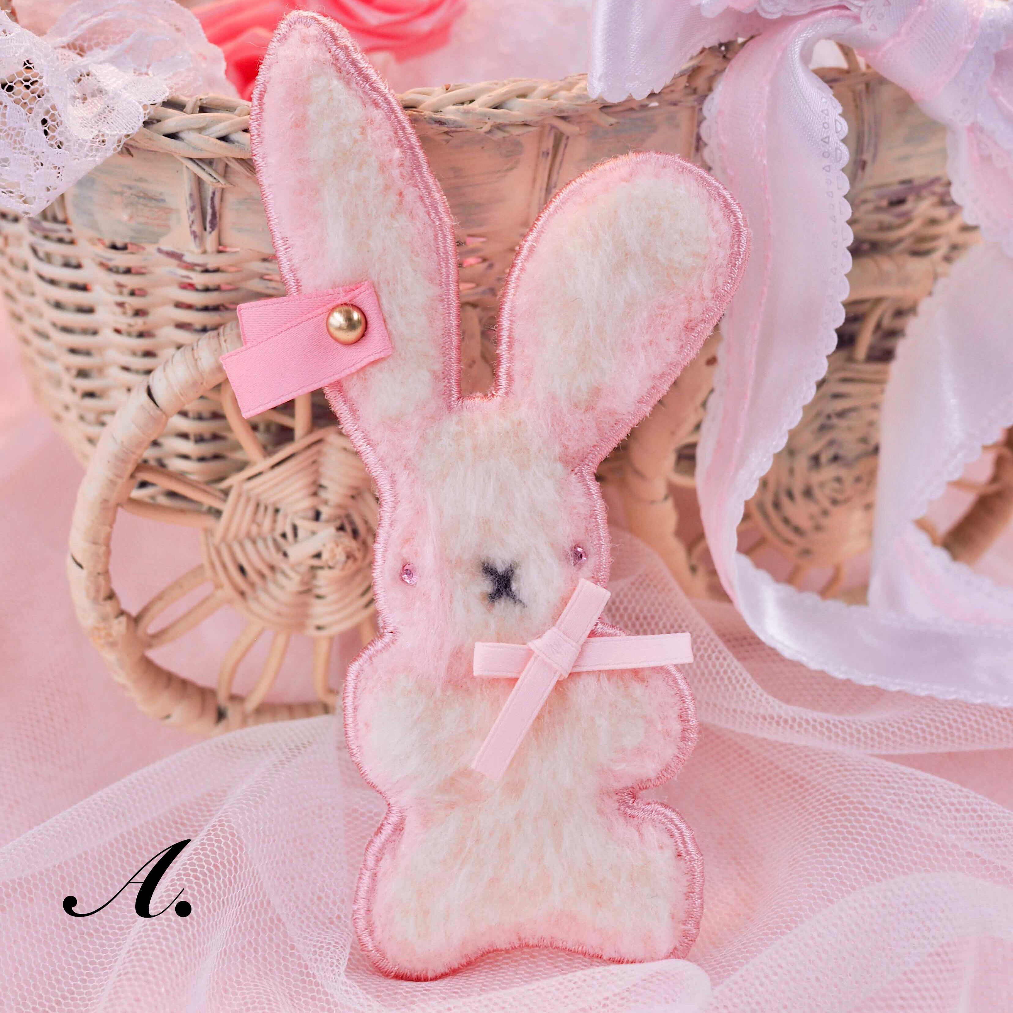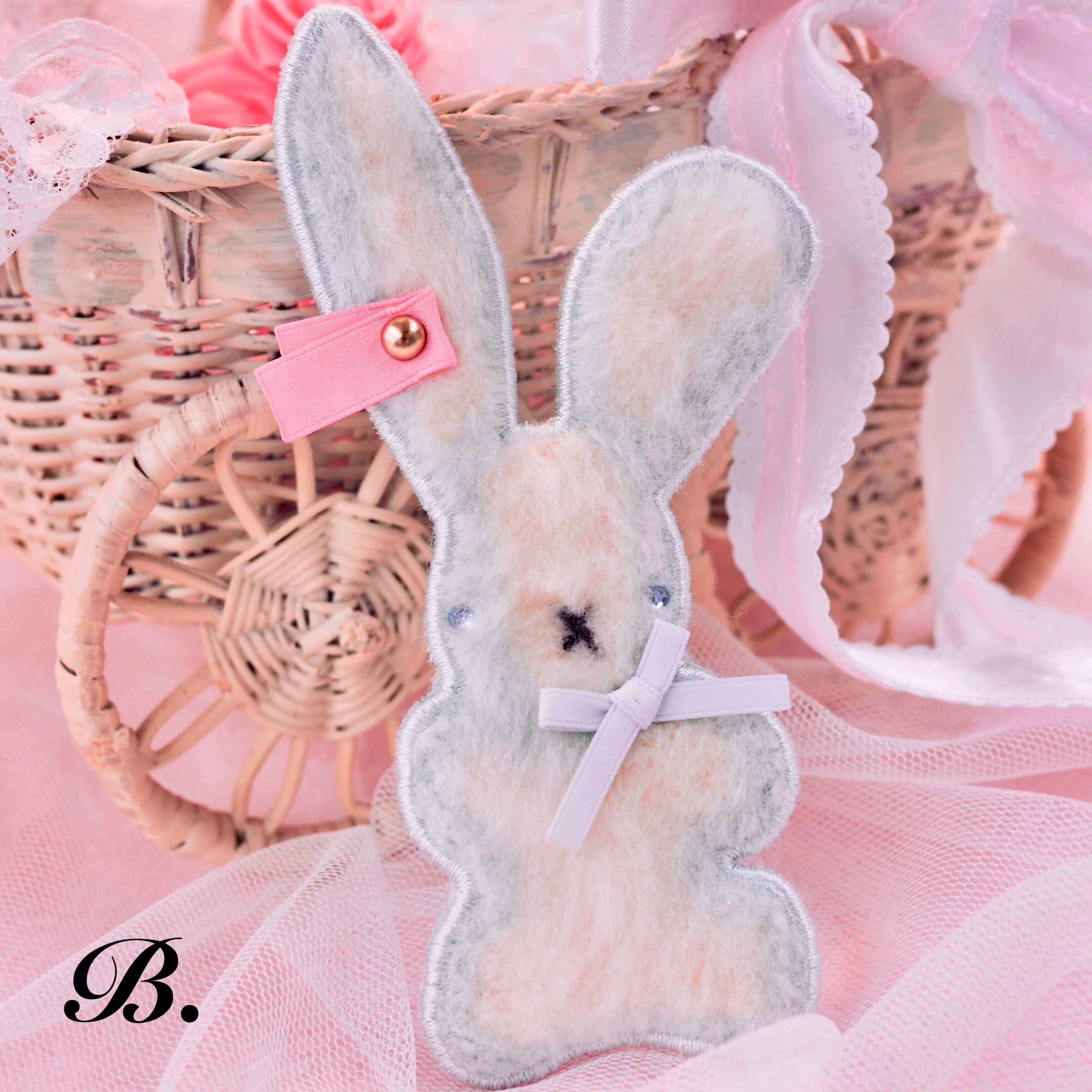 うさぎのあたたかな表情とふわふわな手触りが可愛いワッペンブローチです。
