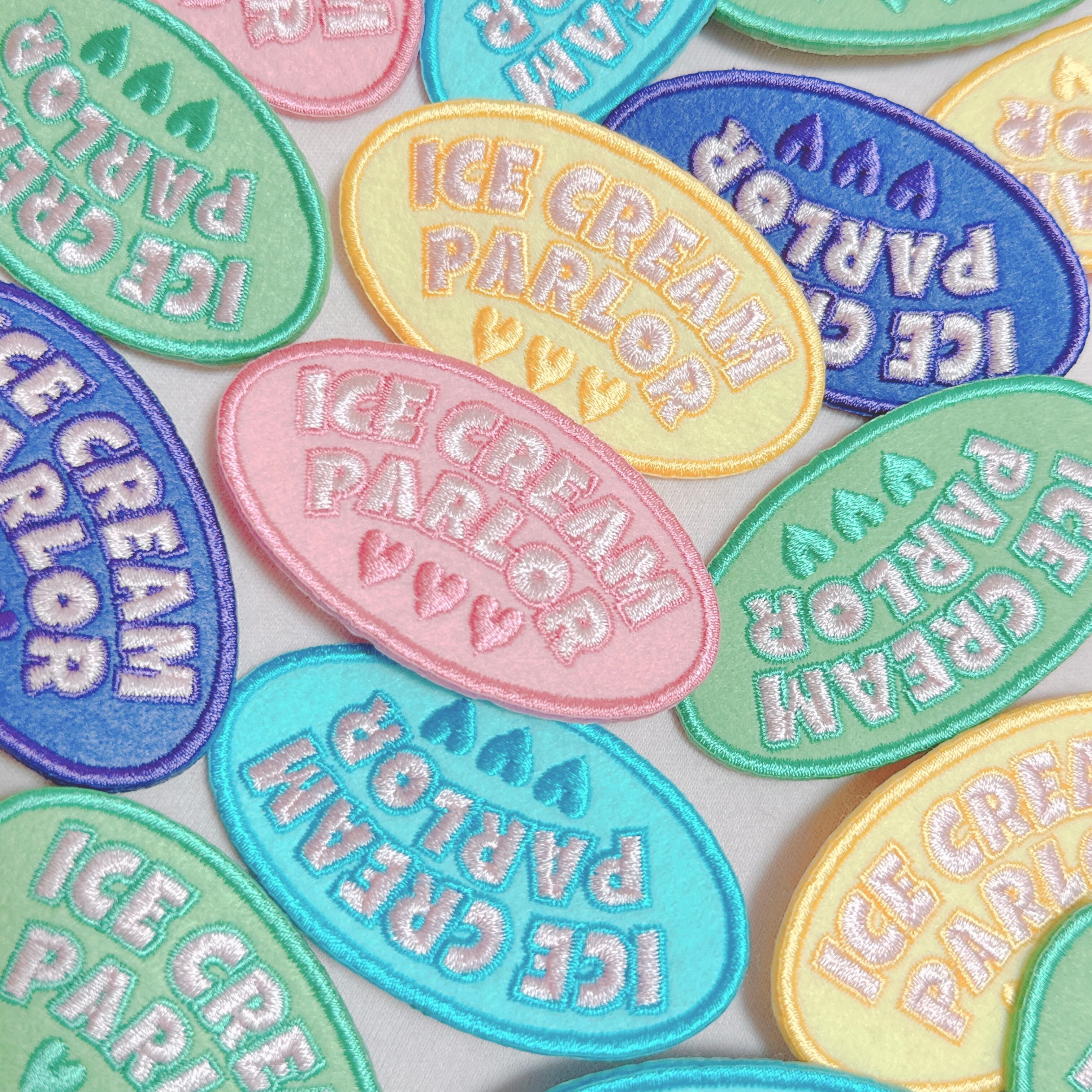 アイス屋さんのロゴをイメージしてデザインしたブローチです。